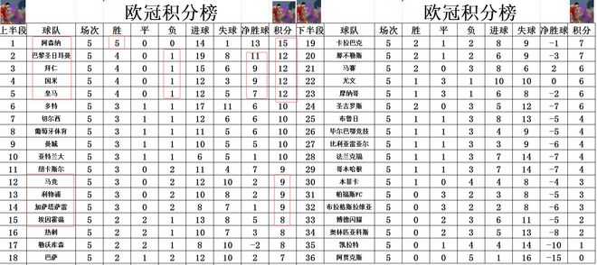 积分榜方面,今天榜首大战中,阿森纳击败拜仁,另外国米输给马竞,这样的话阿森纳就成了5轮过后唯一的全胜球队,力压拜仁,巴黎登顶,英超也有6分的领先优势,双线霸榜,这应该是阿森纳近年来最高光的时刻了。巴黎,拜仁,国米和皇马都是4胜1分,皇马净胜球劣势排在第5。利物浦的笑话从英超还转到了欧冠赛场,今天他们在主场竟然还能惨败给埃因霍温,他们也被马竞超过,排名跌到第13位。