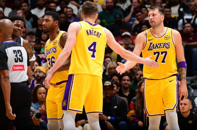 北京时间10月25日,NBA常规赛湖人主场对阵森林狼,詹姆斯继续因伤缺席。湖人在一度落后11分情况下,东契奇攻传结合激活湖人团队攻势,率队反扑在末节扩大25分优势奠定胜局,最终湖人128-110逆转战胜森林狼收获新赛季首胜,森林狼遭遇新赛季首败。东契奇狂轰49+11+8创造多项纪录,无詹湖人终于收获新赛季首胜。