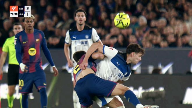 第70分钟,佩德里前场拿球不断做出精彩的表现,奥尔莫禁区推射擦着远端立柱偏出。随后亚马尔连续的尝试射门,均被对手挡出禁区。虽然巴萨始终占据场面上的优势,但是优势只有一个球,并不能保证球队绝对的胜利。博耶单刀劲射,被霍安加西亚倒地封出,阿拉维斯发起了几波强有力的反击,直到补时的最后一分钟,亚马尔助攻,奥尔莫突入禁区劲射远角破门,3:1!锁定胜局。